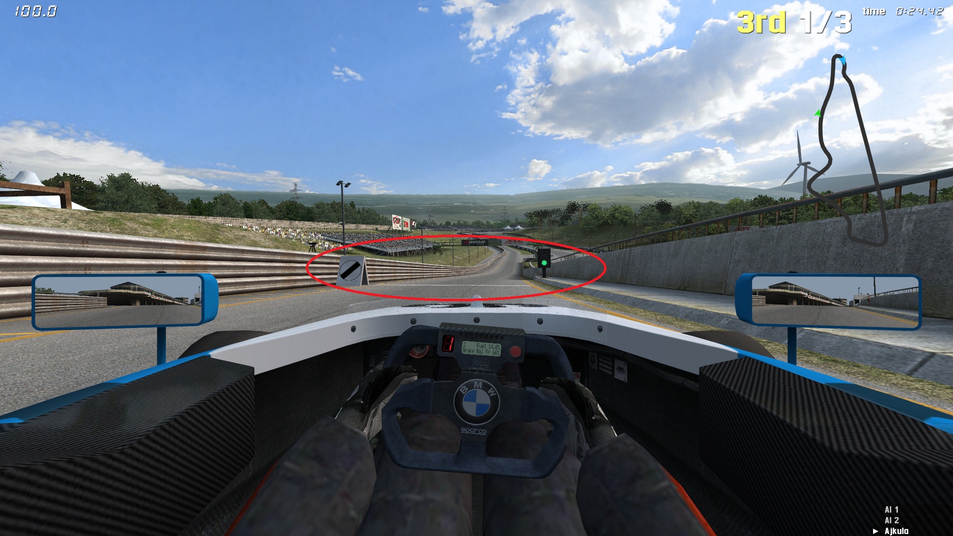Kad sve uredno prodjete i vozite po propisima, dodjite blizu boxeva i vidit cete iscrtkane linije. Slicno ko parking u gradu Rijeci. Pomalo zakocite i stanite. Ako ne pocne odbrojavanje ,onda se ili krecete ili niste pogodili iscrtkane linije. Dajte malo gasa i opet stanite.