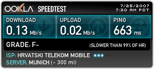 ko sto ja sad pichim preko EDGEa s murtera, preko one trokyeve Nokije 9500… na laptopu, naravno… 3 crtice signala od 8 mogucih, brzina 120-140 kbit/sec…