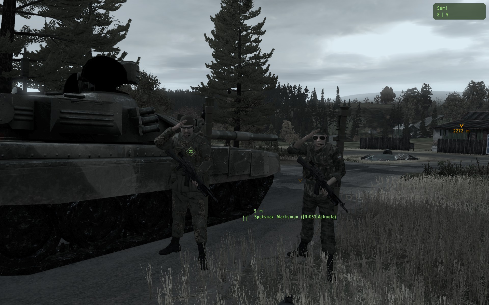 Ri051 u napadu. Posada prvog tenka: Njonjo vozac, LittleCannon ciljac, Posada drugog tenka: guster Armada ciljac, Ajkoola mamojebacgledajmeimamnaocale vozac. (Haljimi negdje u pozadini pokusava upaliti BTR)