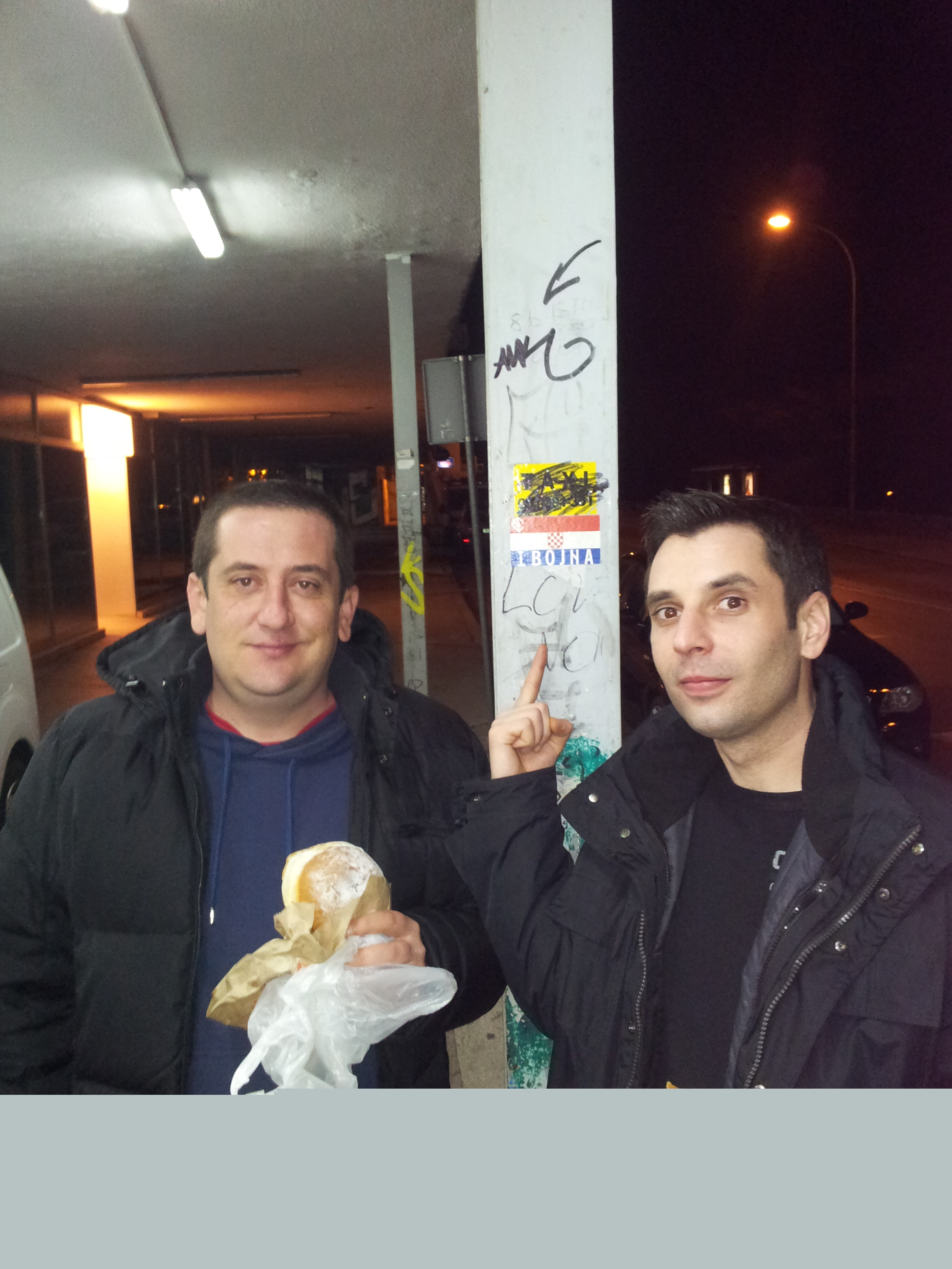 Desilo se to (sudbinski) da smo ja i Ganic jeli burek i krafnu upravo pored stupa na kojem je bila naljepnica 1.Bojna. Svatko ko igra tenkice u ovom klanu,skuzit ce.