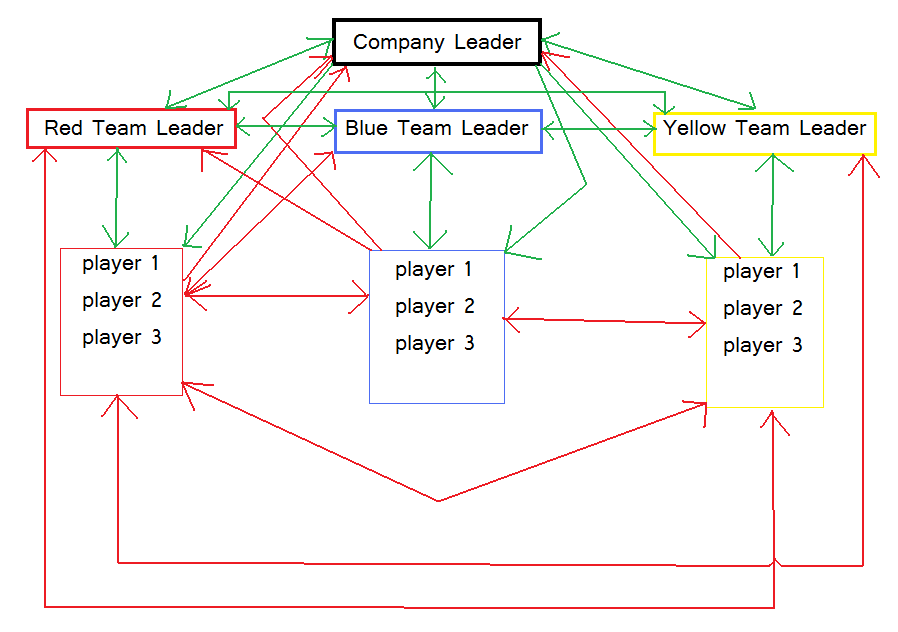 Lideri timova pricaju medjusobno i sa Company Leaderom, te SAMO sa clanovima svog Teama.