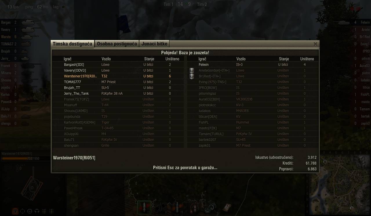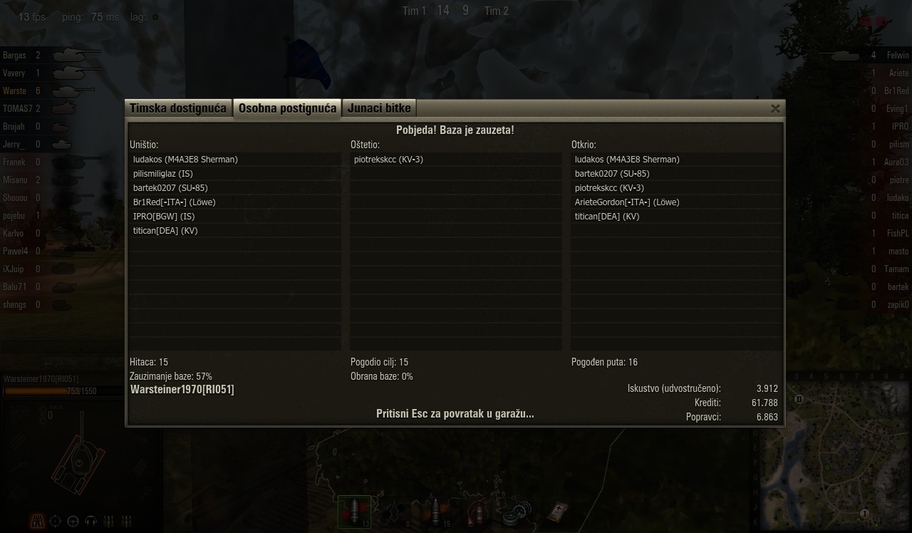 ja sam noćna danas i sutra 🙁 ali ako treba object 704 je dostupan ili T34 konačno ima gun