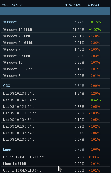 Naime pogled na Steramovu dostupnu statistiku otkriva nam da 97% igara koje se igraju na Steamu, igraju se upravo na Windows platformi pa nekakvim slijedom, da ste i sami pisac igara, pisali bi je za platformu gdje imate veću mogućnost prodaje.