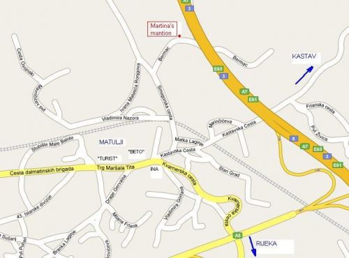 Dodjete u Matulje, kraj INA pumpe skrenete desno prema Kastvu.