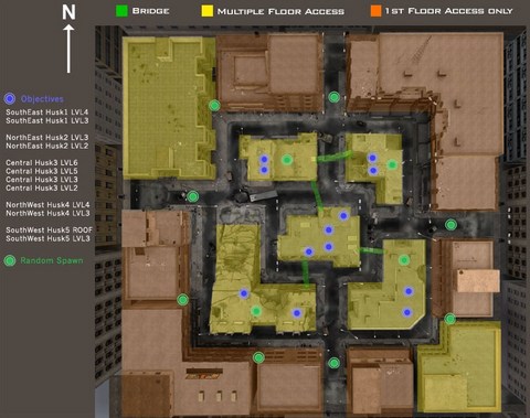 Tlocrtno i igrom poprilicno slicna gore navedenooj ekstrakciji uz jednu vrlo bitnu razliku, puuuuno krovova, koji su sto je vrlo zanimljivo i novu u armiji, meðusobno povezani mostovima, ali i na vise su etaza… sto po meni daje puno mogucnosti za kemp na krovu, ali i ujedno ga gadno otezava, jer treba paziti na sve strane.