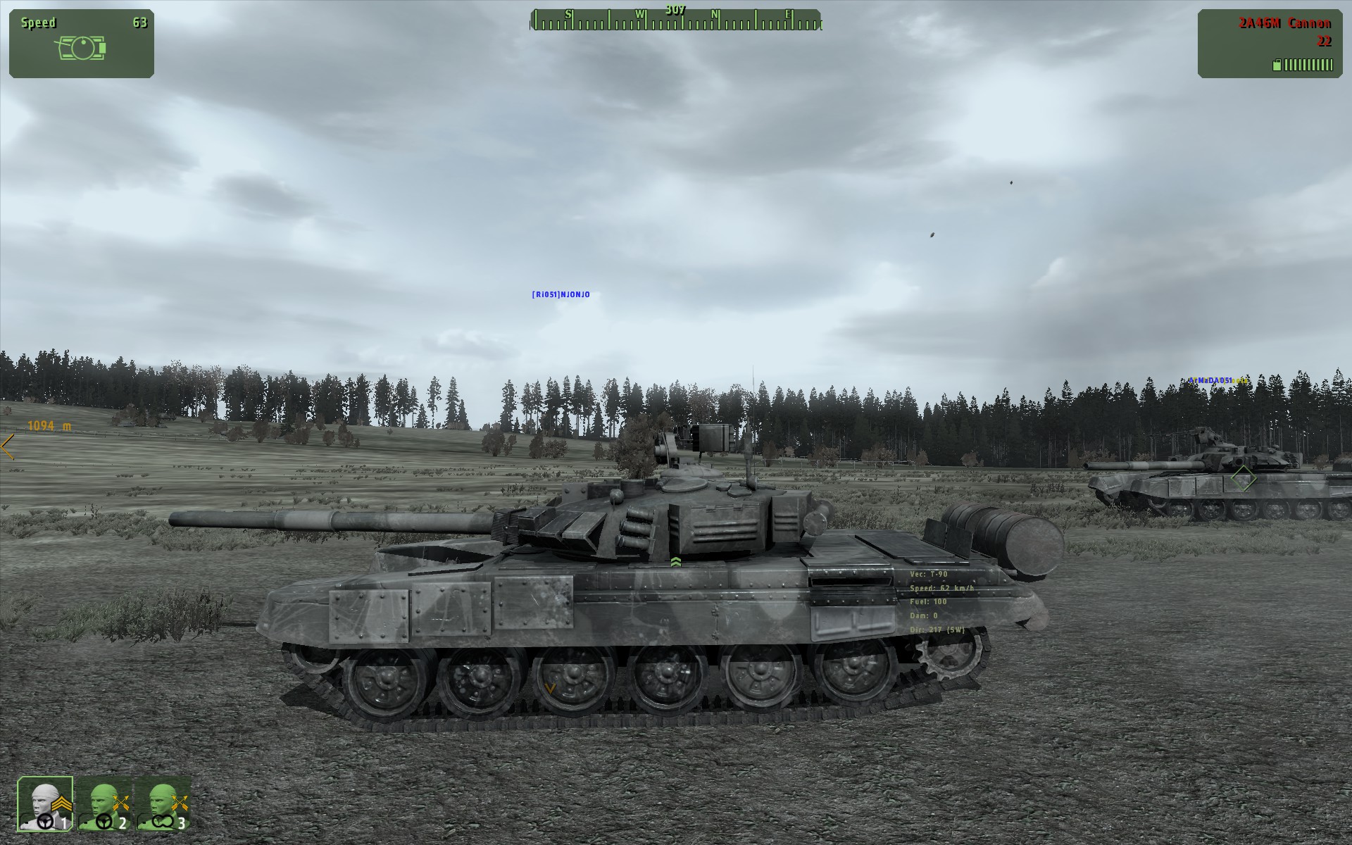 Ri051 u napadu. Posada prvog tenka: Njonjo vozac, LittleCannon ciljac, Posada drugog tenka: guster Armada ciljac, Ajkoola mamojebacgledajmeimamnaocale vozac. (Haljimi negdje u pozadini pokusava upaliti BTR)
