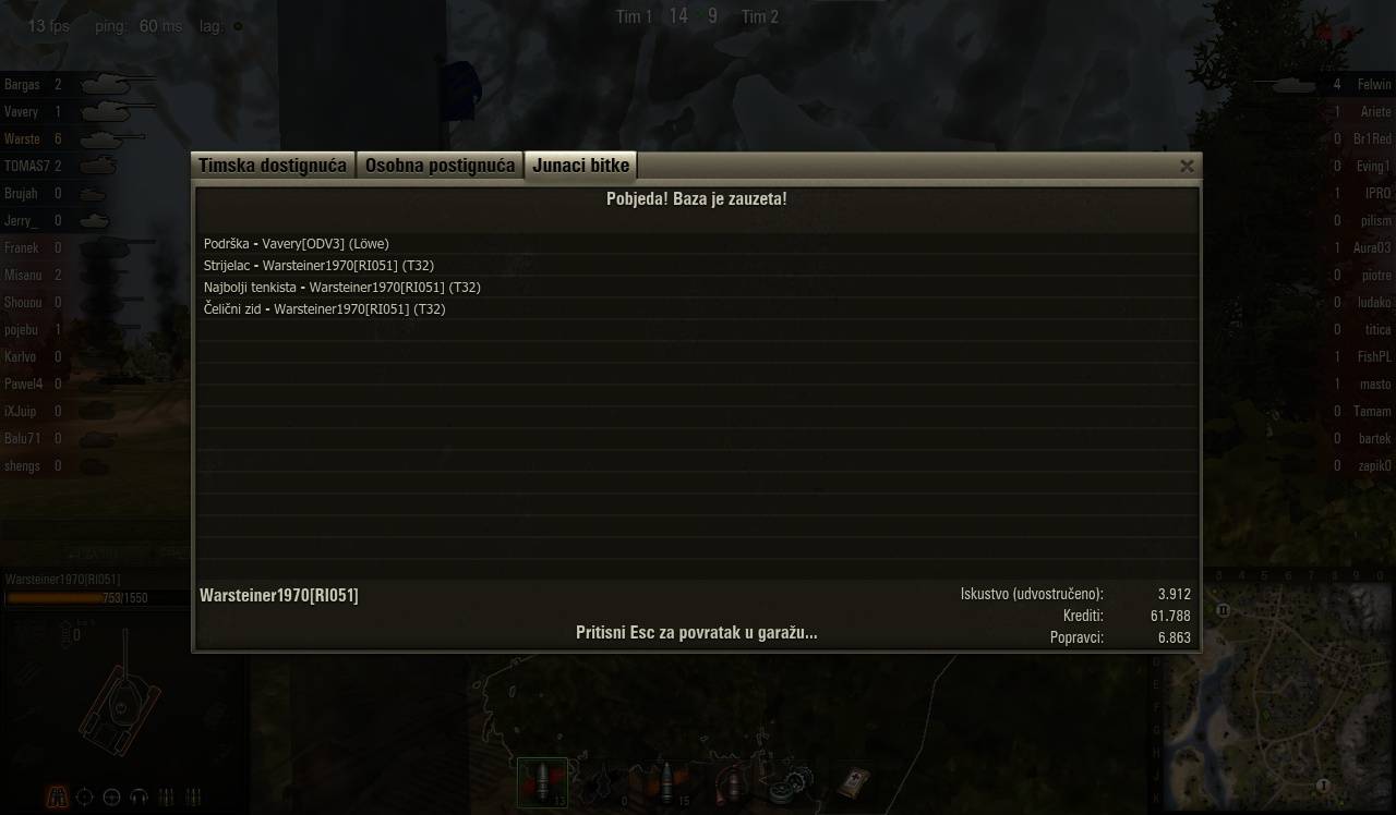 ja sam noćna danas i sutra 🙁 ali ako treba object 704 je dostupan ili T34 konačno ima gun